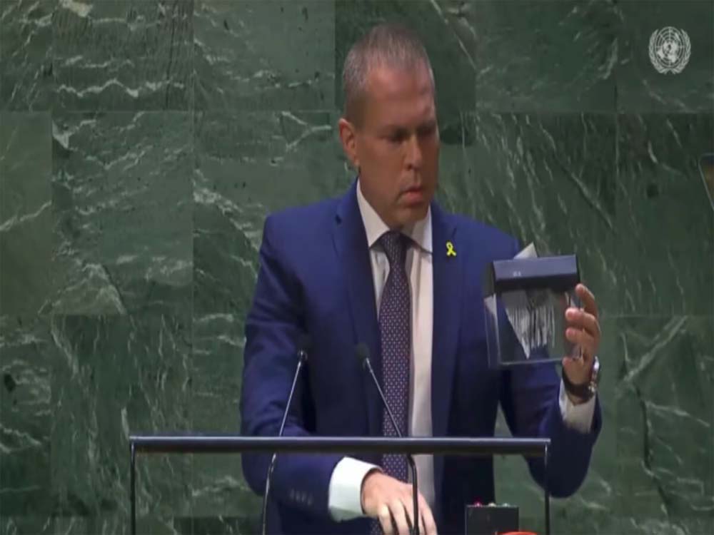 संयुक्त राष्ट्र (UN) में इजरायल के राजदूत गिलाद एर्दान ने फिलिस्तीन को अतिरिक्त अधिकार देने के लिए हुए मतदान के विरोध में यूएन चार्टर की कॉपी फाड़ डाली। उन्होंने महासभा में संयुक्त राष्ट्र चार्टर की एक कॉपी फाड़ दी। इसके लिए वे अपने साथ एक छोटा पेपर श्रेडर लेकर गए थे। इस घटना का एक वीडियो सोशल मीडिया पर वायरल हो रहा है। वीडियो में इजरायली दूत को संयुक्त राष्ट्र की मूलभूत संधि यानी इसके चार्टर की एक कॉपी को श्रेडर में डालकर फाड़ते हुए देखा जा सकता है।