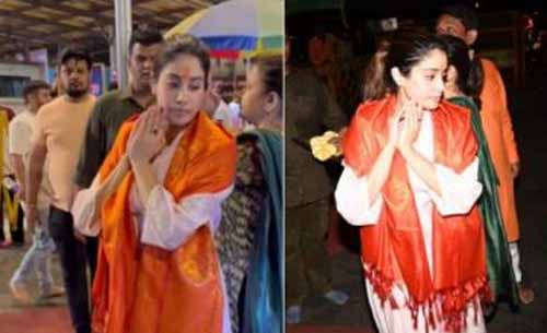 जान्हवी कपूर मंगलवार की सुबह सिद्धिविनायक मंदिर दर्शन करने पहुंचीं। आज नवरात्री का पहला दिन है, इसी के चलते जान्हवी सिद्धिविनायक मंदिर बप्पा का आशीर्वाद लेने पहुंचीं। मंदिर के परिसर में जान्हवी को नंगे पैर चलते हुए देखा गया। इस मौके के लिए एक्ट्रेस ने बेबी पिंक सलवार कमीज चुना।