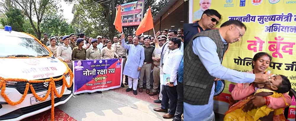 मुख्यमंत्री विष्णुदेव साय ने आज जशपुर में अपने निवास ग्राम बगिया से नोनी रक्षा रथ को झंडी दिखाकर रवाना किया। जशपुर पुलिस प्रशासन द्वारा सुरक्षित महिला, सुरक्षित समाज के उद्देश्य से इस रथ का संचालन किया जा रहा है ताकि जिले में महिलाओं एवं बालिकाओं से संबंधित अपराधों पर लगाम लगे और ऐसे मामलों की कमी आए। इसके साथ ही घटित अपराध पर त्वरित कार्रवाई सुनिश्चित हो।