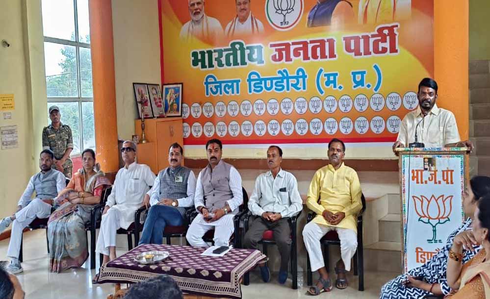 भारतीय जनता पार्टी जिला कार्यालय डिण्डौरी में भाजपा जिलाध्यक्ष अवध राज बिलैया की अध्यक्षता में सदस्यता अभियान मोर्चा प्रकोष्ठों की संयुक्त कार्यशाला का आयोजन किया गया। सर्वप्रथम सभी मंचासीन अतिथियों ने भारत माता, पं. दीनदयाल उपाध्याय, डाॅ. श्यामा प्रसाद मुखर्जी जी के तेलीय चित्र पर माल्यार्पण कर बैठक की शुरूआत की। भाजपा जिलाध्यक्ष अवध राज बिलैया ने संबोधित करते हुए कहा कि भारतीय जनता पार्टी संगठन और सरकार के माध्यम से समाज सशक्तिकरण में अपनी महत्वपूर्ण भूमिका निभा रही है। इसी कारण समाज की अपेक्षा हमसे बढ़ी है और समाज भारतीय जनता पार्टी को सामाजिक मूल्य व राष्ट्रवादी विचार पर आगे बढ़ते देखना चाहता है। पहले हमारी सदस्यता का क्रम आफलाइन था जिसें पूर्व राष्ट्रीय अध्यक्ष अमित शाह के नेतृत्व में 11 करोड़ सदस्य डिजीटल ऑनलाइन कर विश्व के सबसे बड़े राजनैतिक दल भाजपा बनी फिर पुनः सदस्यता करते हुए हम 18 करोड़ सदस्यता बाली पार्टी बन गये। हम सभी को ज्ञात है कि हमारे संगठन में पुनः सदस्यता अभियान एक बार फिर प्रारंभ होने वाली है जिसकी शुरूआत देश के यशस्वी प्रधानमंत्री नरेन्द्र मोदी प्रारंभ करेगें। हर बूथ पर हर जाति,वर्ग,व्यवसायी नागरिकों को भाजपा के सदस्य बनायेगे। जिसके लिए प्रदेश का लक्ष्य डेढ़ करोड़ है एवं हमारे जिले को जो लक्ष्य मिला है वह एक लाख सदस्यता करना है जिसके लिए हमें हर मण्डल, शक्तिकेन्द्र व मतदान केन्द्रों मे केम्प लगाकर सदस्यता करना है।