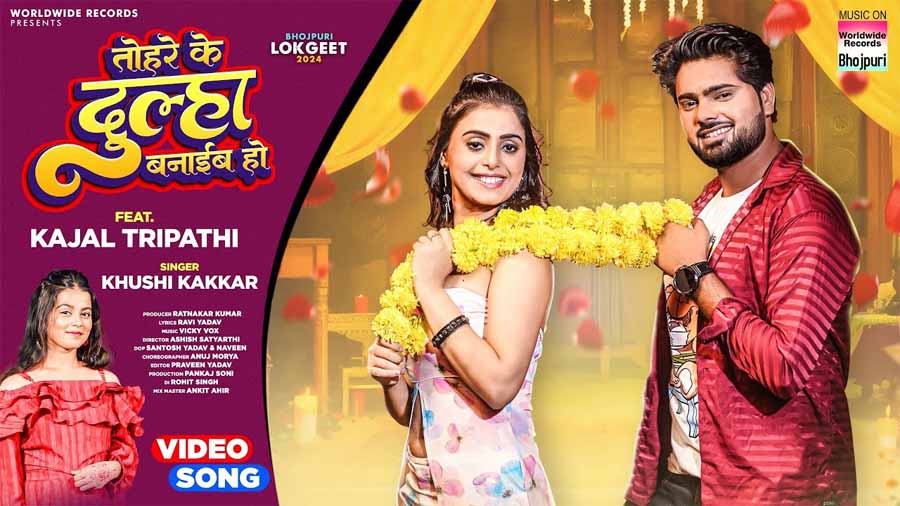 अभिनेत्री काजल त्रिपाठी और गायिका खुशी कक्कड़ का लोकगीत 'तोहरे के दूल्हा बनाईब हो' रिलीज हो गया है। काजल त्रिपाठी और सिंगर खुशी कक्कड़ की शानदार जोड़ी में लोकगीत 'तोहरे के दूल्हा बनाईब हो' को वर्ल्डवाइड रिकॉर्ड्स भोजपुरी के ऑफिसियल यूट्यूब चैनल पर रिलीज किया गया है।इस गाने में दिखाया गया है कि काजल त्रिपाठी किसी हैंडसम लड़के को अपना दिल दे बैठी और उससे बेइंतिहा प्यार करती है।