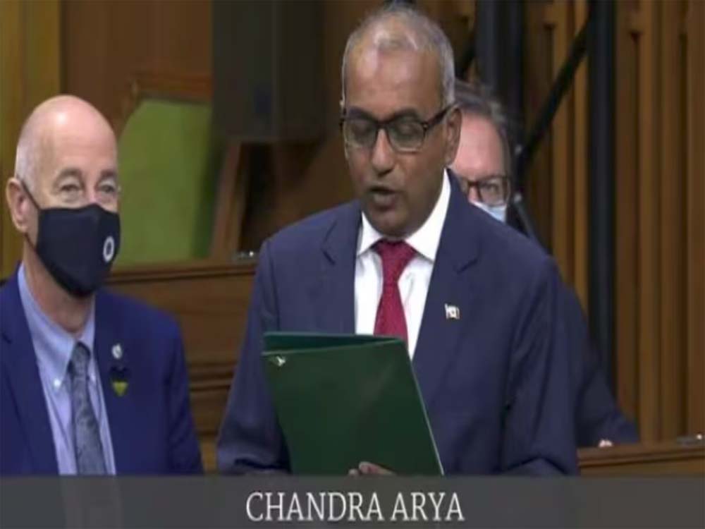 कनाडा की संसद को संबोधित करते हुए चंद्र आर्य ने कहा कि वह विचारधारा अब भी यहां कुछ लोगों में है, जिसने आतंकी हमला कराया था। उन्होंने संसद में सभी से अपील की कि वे 23 जून को आतंकी हमले की बरसी के मौके पर जुटें और मारे गए बेगुनाह लोगों को श्रद्धांजलि अर्पित करें। चंद्र आर्य का यह बयान ऐसे समय में आया है, जब खालिस्तानियों ने निज्जर की हत्या की बरसी मनाई। इसके अलावा कनाडा की संसद में भी उसके लिए एक मिनट का मौन रखा गया था। खालिस्तानी तत्वों ने भारतीय कौंसुलेट के बाहर जन अदालत का आयोजन भी किया था।