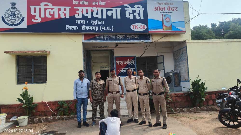 पुलिस अधीक्षक टीकमगढ़ मनोहर सिंह मंडलोई एवं अतिरिक्त पुलिस अधीक्षक सीताराम ससत्या द्वारा कांबिंग गस्त में अवैध शराब, जुआ, सट्टा, अवैध हथियार, अवैध मादक पदार्थ एवं गुंडा बदमाशों के विरुद्ध कार्यवाही करने हेतु निर्देशित किया गया है। इसी तारतम्य में एसडीओपी टीकमगढ़ राहुल कटरे के मार्गदर्शन में चौकी देरी थाना खरगापुर पुलिस द्वारा मुखबिर की सूचना पर दबिश देकर निम्न ईनामी स्थाई गिरफ्तारी वारंटी आरोपिगण को गिरफ्तार कर न्यायालय पेश किया गया।