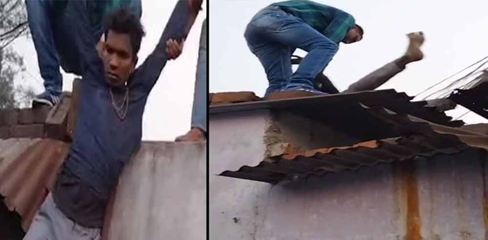 स्थानीय लोगों की कहना है कि एक झोपड़ी नमक घर के ऊपर युवक चढ़ा। इसके बाद और भी जुड़े घरों के ऊपर अचानक दौड़ लगाने लगा। इस दौरान झोपड़ी नुमा घर का आधा छज्जा भरभरा कर नीचे गिर गया, लेकिन युवक नीचे नहीं गिरा। आवाज सुनकर बस्ती के लोग घर के बाहर निकले तो देखा कि शराब के नशे में धुत युवक एक के बाद एक घरों पर उछल कूद मचाता रहा। युवक की हरकत देख आसपास के लोग बाहर निकल आए और इसकी सूचना पुलिस को दी। मौके पर पहुंची पुलिस काफी मशक्कत के बाद उसे नीचे उतारा और अपने साथ थाने ले गई।