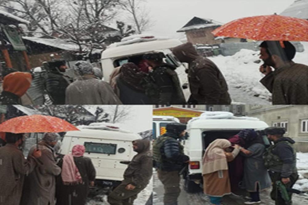 जम्मू-कश्मीर के बारामूला जिले में पुलिस ने इमरजेंसी कॉल पर तुरंत प्रतिक्रिया देते हुए मंगलवार सुबह भारी बर्फबारी के बीच एक गर्भवती महिला को सुरक्षित निकाला। एक पुलिस अधिकारी ने यह जानकारी दी। अधिकारी ने बताया कि सोपोर पुलिस को ज़ेथन डांगीवाचा निवासी शमशाद अहमद मीर का फोन आया। उसने अपनी गर्भवती पत्नी को तत्काल चिकित्सा सहायता दिलाने का अनुरोध किया था, जिसकी हालत गंभीर थी।