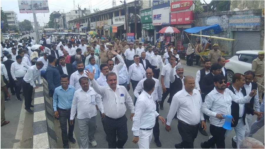 सिंहासन गिरी और कलक्ट्रेट बार एसोसिएशन के अध्यक्ष संजय मिश्रा के नेतृत्व में सैकड़ों वकीलों ने जिलाधिकारी के खिलाफ नारेबाजी की और उनके तबादले की मांग को लेकर प्रदर्शन किया। वकीलों ने डीएम के पुतले को लिटाकर कचहरी परिसर में घुमाया और सिविल लाइन रोड पर पुतले का दहन किया। गिरी ने कहा कि जबतक जिलाधिकारी अखंड प्रताप सिंह का यहाँ से स्थानान्तरण और उनके खिलाफ कार्रवाई नहीं होती है, तब तक वकील अपना आन्दोलन जारी रखेंगे।