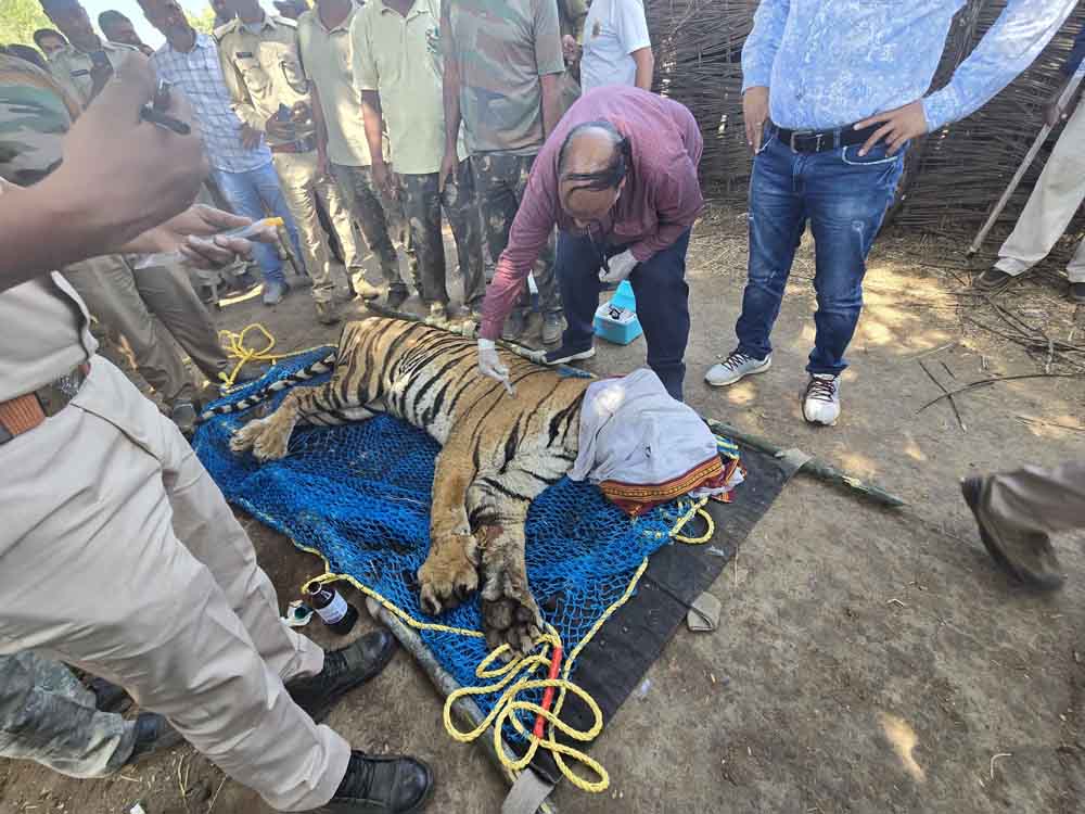 बाघ के पैर में चोट होने के कारण वह काफी कमजोर हो गया था तथा चलने में कठिनाई महसूस कर रहा था। ग्रामीणों की भीड़ के कारण वह निकटवर्ती जंगल की ओर जाने का प्रयास कर रहा था किन्तु व्यवधान होने से घर की बाड़ी के समीप बैठ गया। क्षेत्र संचालक श्री एस.के. सिंह, भा.व.से. द्वारा बाघ की स्थिति के बारे में मुख्य वन्यप्राणी अभिरक्षक एवं प्रधान मुख्य वन संरक्षक, वन्यप्राणी, मध्य प्रदेश, भोपाल को फोन पर सूचना दी जाकर घायल बाघ के रेस्क्यू हेतु अनुमति प्राप्त की गई। औपचारिक अनुमति प्राप्त होने के उपरांत कान्हा टाइगर रिजर्व की रेस्क्यू टीम ने श्री एन.एस. यादव, उप संचालक, बफरजोन वनमण्डल, मण्डला, डॉक्टर संदीप अग्रवाल, वन्यप्राणी चिकित्सक की उपस्थिति एवं क्षेत्र संचालक, कान्हा टाईगर रिजर्व के नेतृत्व में घायल बाघ का रेस्क्यू किया गया। निश्चेतन उपरांत बाघ के निरीक्षण में पाया गया कि बाघ के चारों केनाइन दांत टूटे हुए पाए गए एवं उसके पैरों में गहरी चोट लगी हुई थी।