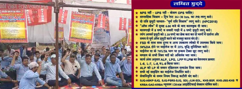 लोको रनिंग स्टाफ ने अपनी 15 सूत्रीय मांगों को लेकर एक दिवसीय देशव्यापी धरना-प्रदर्शन का आह्वान किया था. इस कड़ी में रायपुर में डीआरएम कार्यालय के सामने मंडल के लोको रनिंग स्टाफ ने धरना दिया. धरना-प्रदर्शन के बाद डीआरएम को ज्ञापन सौंपा. इसके साथ ही मांगों के पूरा होने तक आंदोलन करते रहने और 18 अक्टूबर को रेल रोकने की चेतावनी दी.