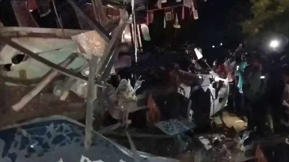 भीषण सड़क हादसा कोलार के पास नरसापुर में हुआ। बस बेंगलुरु से तिरुपति की ओर जा रही थी। कुछ तस्वीरें और वीडियो सामने आए हैं जिससे हादसे की भयावहता को समझा जा सकता है।