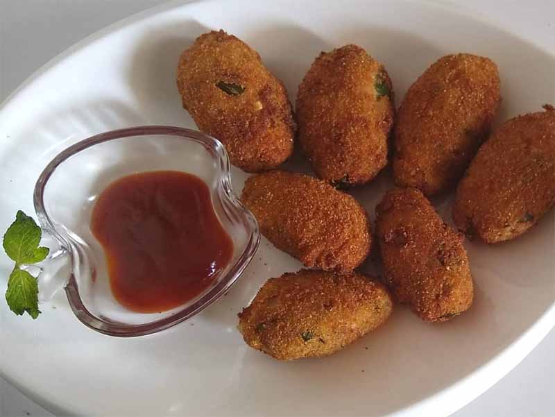 कटलेट्स को बारी-बारी से चावल के आटे में लपेटकर गर्म तेल की कढ़ाई में डालते जाएं।