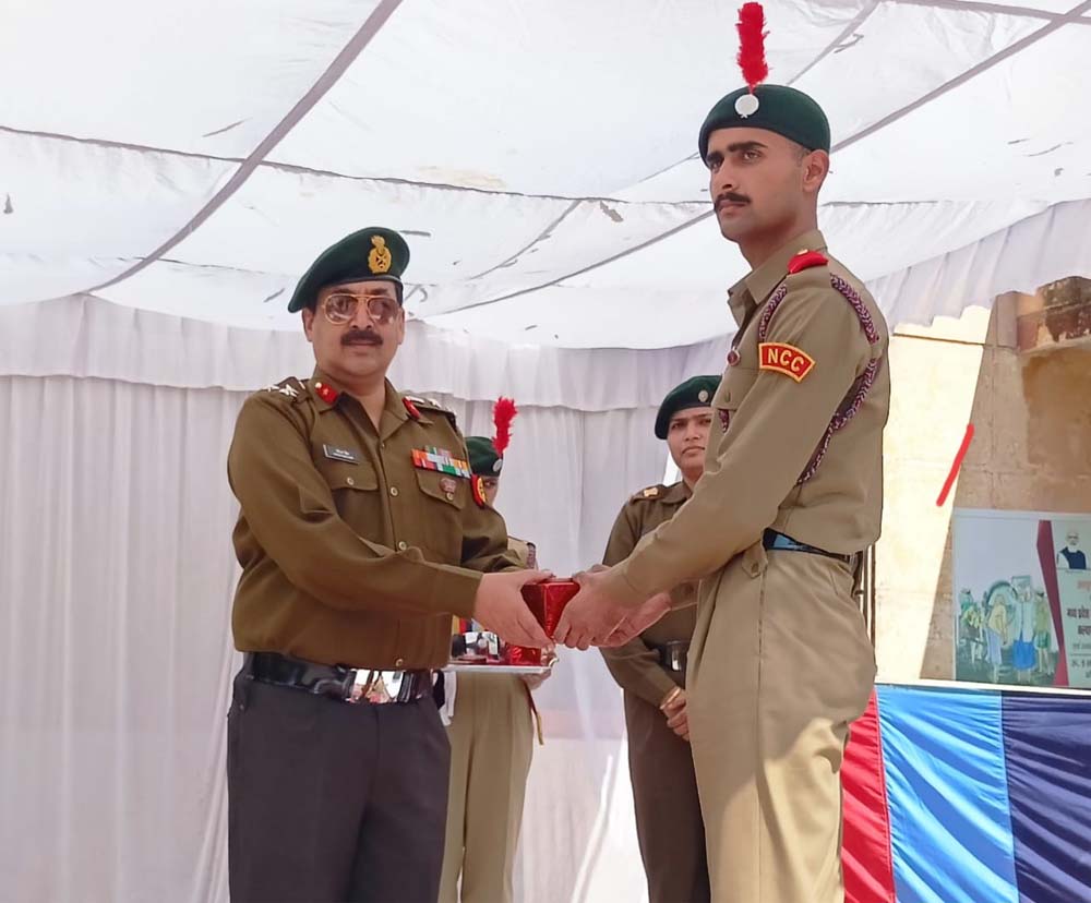 एनसीसी ग्रुप इंदौर की 9 एमपी बटालियन एनसीसी इंदौर के भेरूलाल पाटीदार शासकीय स्नातकोत्तर महाविद्यालय महू के अंडर ऑफिसर शुभम सिरसे नई दिल्ली में आयोजित गणतंत्र दिवस परेड 2024 में मध्यप्रदेश एवम छत्तीसगढ़ निदेशालय का प्रतिनिधित्व कर वापिस इंदौर आने पर सोमवार को इंदौर ग्रुप के ग्रुप कमांडर ब्रिगेडियर एस जैन द्वारा सम्मानित किया गया।9 एमपी बटालियन एनसीसी इंदौर के कमान अधिकारी कर्नल मोहन तिवारी महाविद्यालय के प्राचार्य डॉ प्रवीण ओझा ने बताया कि इस वर्ष नई दिल्ली में आयोजित गणतंत्र दिवस परेड पर प्रधानमंत्री रैली में महू के अंडर ऑफिसर शुभम सिरसे प्रधानमंत्री नरेंद्र मोदी को दिनांक 27 जनवरी 2024 को गार्ड ऑफ ऑनर देकर बटालियन तथा एनसीसी ग्रुप इंदौर का नाम गौरवान्वित करने पर इंदौर में आयोजित सम्मान समारोह में सम्मानित किया गया।