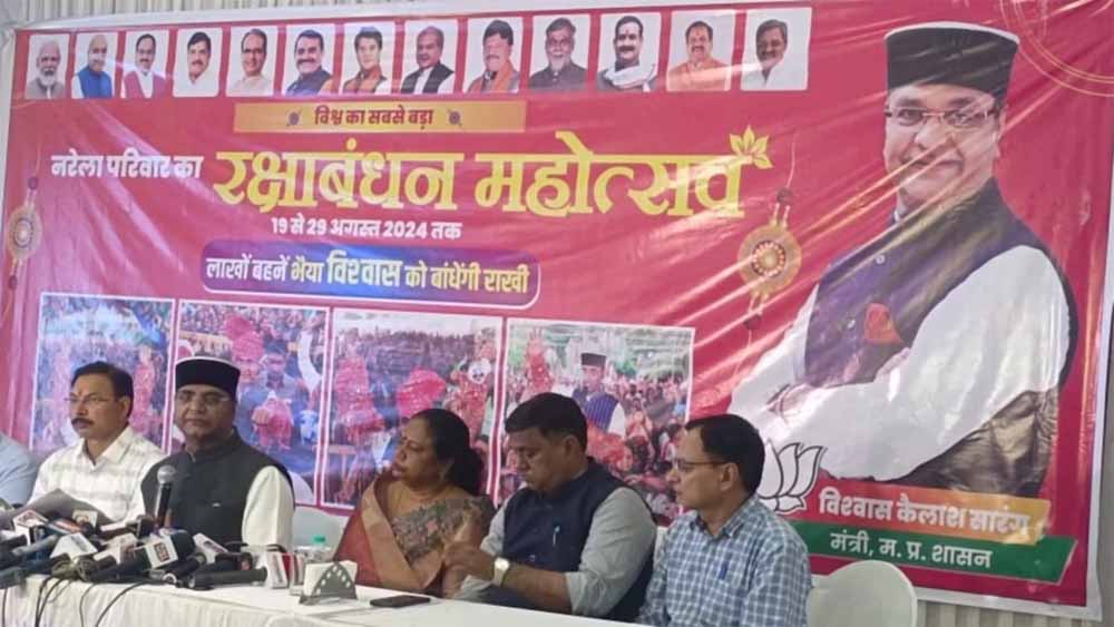 मंत्री सारंग ने शनिवार को लिंक रोड क्रमांक एक गुजराती भवन में जानकारी देते हुए कहा कि विश्व का सबसे बड़ा रक्षाबंधन पर्व मनाया जा रहा है। वर्ष 2009 से रक्षाबंधन पर्व मनाया जा रहा है। इस बार 16वां आयोजन है। बीते वर्ष 2023 में एक लाख 41 हजार 324 बहनों ने रक्षा-सूत्र बांधकर एक कीर्तिमान स्थापित किया था। इसके अलावा रक्षाबंधन महोत्सव के दौरान 4 घंटे में 10182 बहनों से राखी बंधवाने का रिकॉर्ड भी बन चुका है।