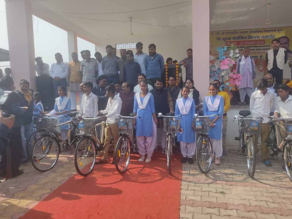 राजनगर विधायक अरविन्द्र पटैरिया ने शा उ मा विद्यालय में छात्र छात्राओं को साइकिलें वितरित की। शा उ मा विद्यालय घूरा में साईकिल वितरण समारोह के मुख्यातिथि अरविन्द्र पटेरिया विधायक राजनगर, अध्यक्षता पुष्पेन्द्र अवस्थी उपा जनपद पंचायत राजनगर ने 243 साईकिलें छात्र छात्राओं को वितरित की इस मौके पर विधायक अरविन्द्र पटैरिया ने कहा घूरा स्कूल में विद्यार्थियों को कमरों की कमी नहीं पड़गी अतिरिक्त कक्ष का निर्माण जल्द से जल्द होगा आने वाले समय में घूरा बमीठा में सी एम राइस स्कुल खोला जायेगा भाजपा सरकार विद्यार्थियों को शिक्षित करने के लिए कई योजनाएं लाई है गरीब का बच्चा होसियार है तो उसकी पढ़ाई का खर्च सरकार उठाती है बच्चे देश का भविष्य हैं मन लगा कर पढ़ो और आगे बढ़ो कार्यक्रम में कु अकांक्षा रावत बी ई ओ राजनगर, प्रभारी प्राचार्य राजेन्द्र सिंह बुन्देला, सोनू नगरिया, मंजू जैन सरपंच प्रतिनिधि बमीठा , सुनील शिवहरे सरपंच घूरा, जनपद रिंकू महाराज, मौजूद रहे।