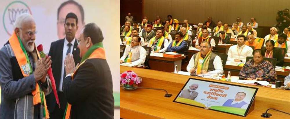 पार्टी के शीर्ष नेताओं ने अपने भाषणों में बीजेपी पदाधिकारियों से हर जगह अपनी बूथ समितियों को मजबूत करने के लिए कहा ताकि यह सुनिश्चित किया जा सके कि उसके स्थानीय कार्यकर्ता अधिक से अधिक लोगों तक पहुंच सकें. राजस्थान, छत्तीसगढ़ और मध्य प्रदेश की जीत पर अध्यक्षों की ओर से विचार रखे गए. बीजेपी की मध्य प्रदेश इकाई के अध्यक्ष विष्णु दत्त शर्मा ने 'एक्स' पर एक पोस्ट में कहा, 'नयी दिल्ली में आयोजित दो दिवसीय राष्ट्रीय पदाधिकारी बैठक में सम्मिलित हुआ. इस अवसर पर मध्य प्रदेश के विधानसभा चुनाव में संगठन के किए गये विभिन्न नवाचारों व प्रत्येक बूथ पर 51 प्रतिशत वोट पाने की गतिविधियों के बारे में जानकारी साझा की.' बैठक में अयोध्या में 22 जनवरी को होने वाले राम मंदिर के प्राण प्रतिष्ठा समारोह पर भी चर्चा हुई. पार्टी को विश्वास है कि चुनाव में यह उसके पक्ष में एक बड़ा मुद्दा होगा. पार्टी के विभिन्न 'मोर्चों' ने चुनाव से पहले अपने आगामी कार्यक्रमों के बारे में विचार रखे.