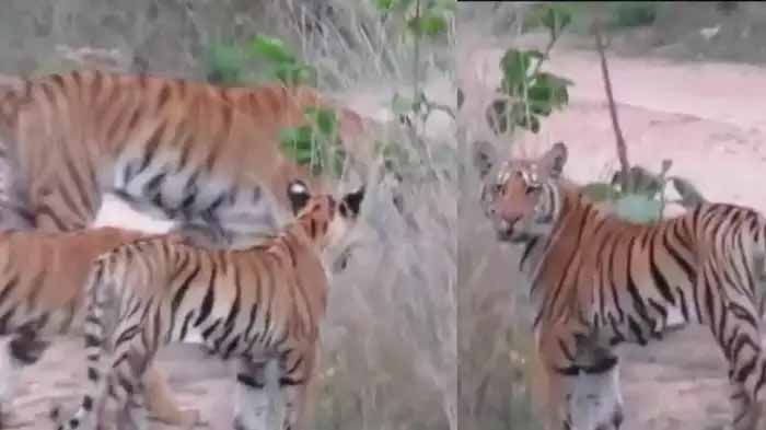 मोगली पेंच अभ्यारण्य में 4 शावक के साथ मस्ती करती दिखी बाघिन मां