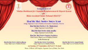 सर्वोच्च न्यायालय के न्यायमूर्ति एवं कार्यकारी अध्यक्ष, राष्ट्रीय विधिक सेवा प्राधिकरण जस्टिस श्री सूर्यकांत द्वारा नई दिल्ली स्थित सुप्रीम कोर्ट में “दावेदार प्रतिपूर्ति एवं जमा प्रणाली हेतु डैशबोर्ड” (Dashboard for Claimant Reimbursement & Deposit System for Motor Accident Claims Tribunal – MACT)” का शुभारंभ किया जो कि मोटर दुर्घटना पीड़ितों को शीघ्र और पारदर्शी मुआवज़ा दिलाने के उद्देश्य से एक महत्वपूर्ण पहल है।