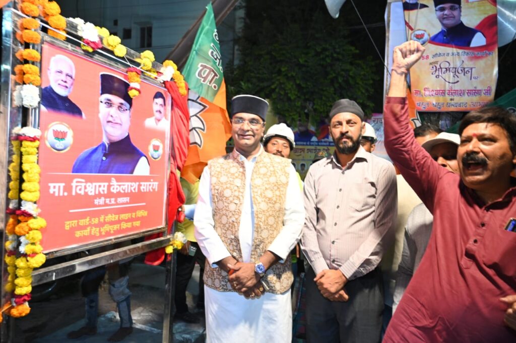 रहवासियों ने किया मंत्री सारंग का भव्य स्वागत