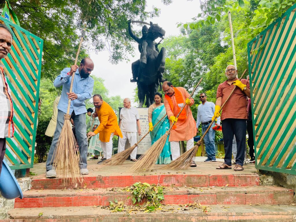वीरांगना झलकारी बाई की प्रतिमा की सफाई कर विधायक भगवानदास सबनानी ने दिया स्वच्छता का संदेश