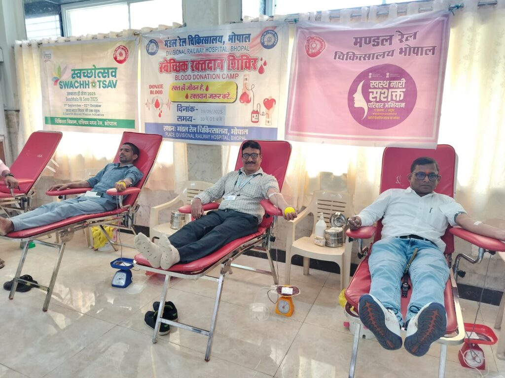रेलवे अस्पताल भोपाल में स्वैच्छिक रक्तदान शिविर आयोजित