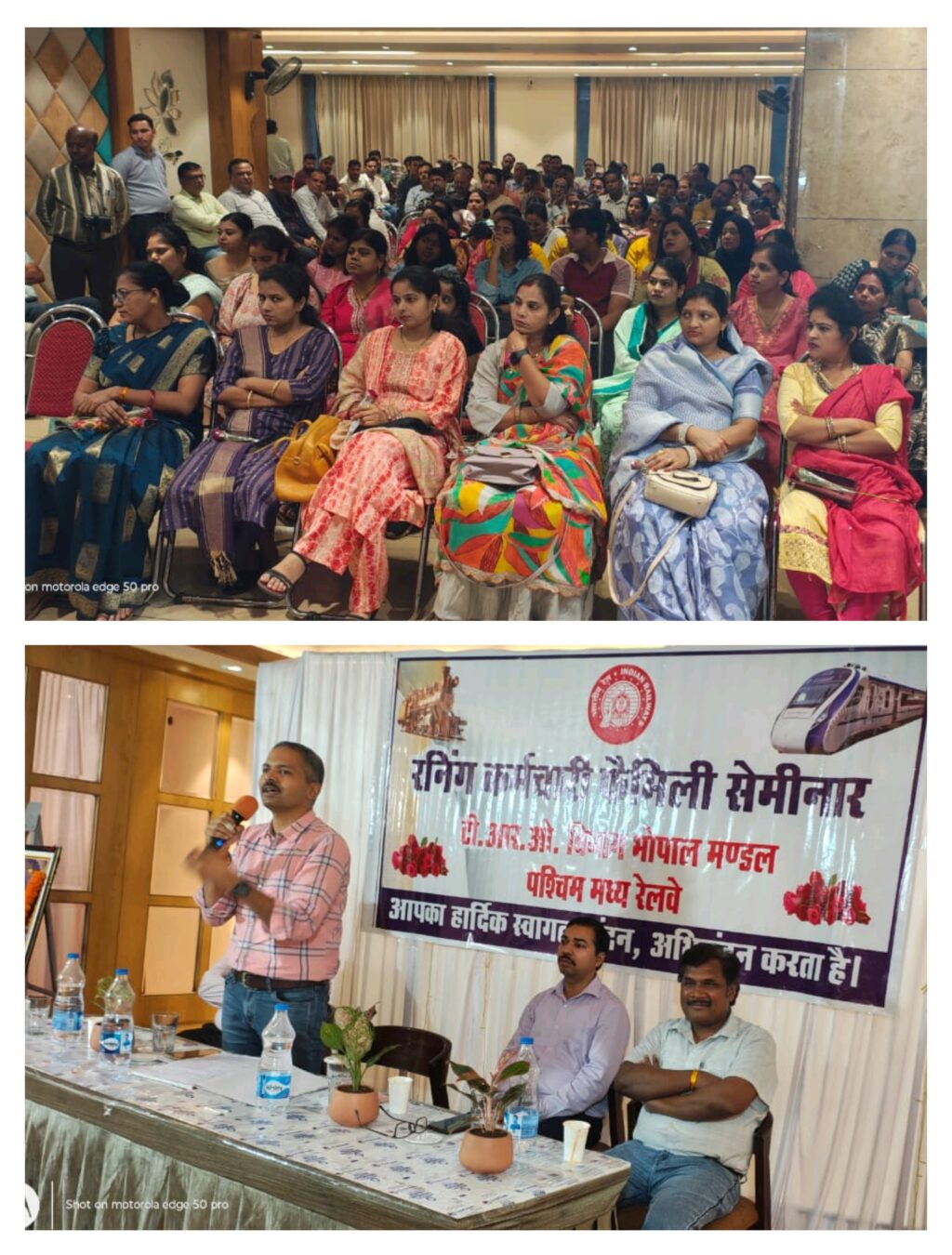 रनिंग स्टाफ हेतु दिनांक 18.09.2025 को भोपाल में वरिठ मंडल विधुत इंजीनियर (टीआरओ) एवं वरिष्ठ मंडल चिकित्साधिकारी के नेतृत्व मे भोपाल में सेफ्टी सेमीनार एवं उनके परिवारजनो के साथ फैमिली सेमीनार का सफल आयोजन किया गया जिसमें लगभग 110 रनिंग कर्मचारी अपने परिवार सहित उपस्थित रहे।