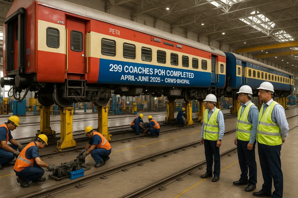 पश्चिम मध्य रेलवे के सवारी डिब्बा पुर्ननिर्माण कारखाना (CRWS), भोपाल ने चालू वित्तीय वर्ष 2025-26 के प्रथम तीन माह (अप्रैल से जून 2025) के दौरान कुल 299 कोचों का सफलतापूर्वक पीरियोडिक ओवर हॉलिंग (POH) कर उल्लेखनीय प्रदर्शन किया है। इसी अवधि में जून माह के दौरान कारखाने ने 100 कोचों का पीओएच आउटर्न कर अपनी दक्षता का परिचय दिया। यह आंकड़े रेलवे बोर्ड द्वारा निर्धारित लक्ष्यों के सापेक्ष सराहनीय उपलब्धि को दर्शाते हैं।