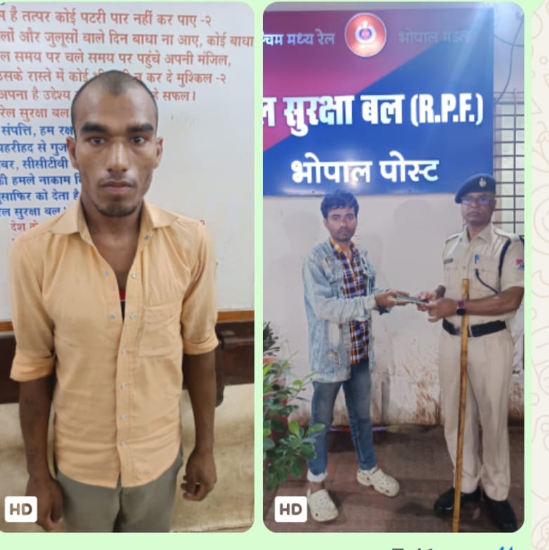 भोपाल रेलवे स्टेशन पर रेलवे सुरक्षा बल (आरपीएफ) द्वारा यात्रियों की सुरक्षा एवं चोरी की घटनाओं की रोकथाम हेतु लगातार सतर्कता बरती जा रही है। इसी क्रम में दिनांक 20 जुलाई 2025 को रात्रि शिफ्ट के दौरान ड्यूटी पर तैनात प्रधान आरक्षक सुरेश कुमार मालवीय द्वारा सतर्कता का परिचय देते हुए एक मोबाइल चोर को रंगे हाथों गिरफ्तार किया गया।
