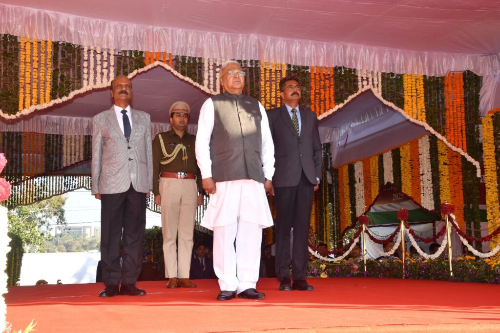 मध्यप्रदेश में गणतंत्र दिवस समारोह का समापन बुधवार को “बीटिंग द रिट्रीट’’ के साथ हुआ। समारोह में राज्यपाल श्री मंगूभाई पटेल बतौर मुख्य अतिथि के रूप में उपस्थित थे। जहांगीराबाद स्थित लाल परेड मैदान में यह समारोह हुआ। इस रंगारंग कार्यक्रम में पुलिस ब्रास बैंड के वादकों ने अपनी संगीतमय प्रस्तुतियों के माध्यम से संयम, अनुशासन और एकरूपता का परिचय दिया ।