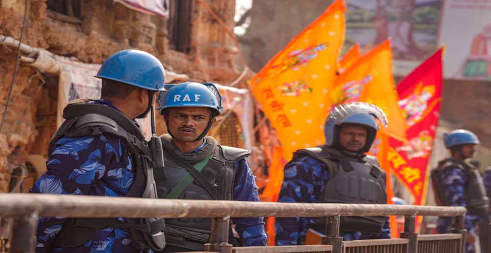 अयोध्या में सोमवार को होने वाले राम मंदिर में प्राण प्रतिष्ठा समारोह के लिए बहुस्तरीय सुरक्षा व्यवस्था की गई है, जिसमें 10,000 सीसीटीवी कैमरे लोगों की गतिविधियों पर नजर रख रहे हैं और सादे कपड़ों में पुलिसकर्मी भी निगरानी के लिए तैनात किये गए हैं। अयोध्या में धर्मपथ और रामपथ से लेकर, जहां भक्तों की भारी भीड़ देखी जा रही है, वहीं हनुमानगढ़ी इलाके की गलियों और अशर्फी भवन रोड तक, पुलिसकर्मियों को सड़कों पर गश्त करते देखा जा सकता है।