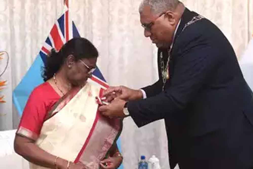 राष्ट्रपति द्रौपदी मुर्मू को दक्षिण प्रशांत महासागरीय द्वीप देश फिजी के सर्वोच्च नागरिक सम्मान ‘कंपेनियन ऑफ द ऑर्डर ऑफ फिजी’ से नवाजा गया है। सुश्री मुर्मु फिजी की सरकारी यात्रा पर यहां पहुंची है। वह यहां की यात्रा करने वाली भारत की पहली राष्ट्रपति हैं।