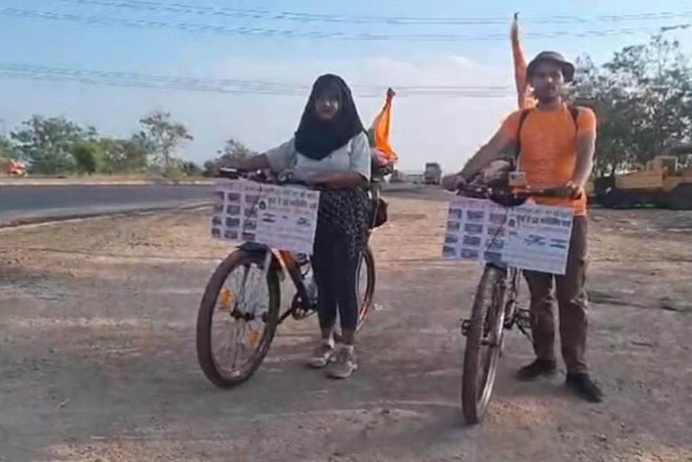 बड़वानी जिले के सेंधवा के नेशनल हाइवे पर गुरुवार को एक मुस्लिम युवती शबनम शेख अपने साथी के साथ साइकिल यात्रा करते हुए अपनी साइकिलों पर भगवा ध्वज लगाए पहुंचीं। इस दौरान उन्होंने बताया कि वे देश के प्रधानमंत्री नरेंद्र मोदी की बड़ी फैन हैं और उन्हें बड़ा पसंद करती हैं। उन्हें दोबारा से प्रधानमंत्री बनते देखना चाहती हैं, जिसके लिए वह मुंबई से साइकिल से यात्रा करते हुए देश भर के 12 ज्योतिर्लिंगों पर भगवान भोलेनाथ को जल चढ़ाकर मन्नत मांगने निकली हैं तो वहीं, वे फिलहाल महाराष्ट्र के दो ज्योतिर्लिंग के दर्शन कर अब मध्यप्रदेश के ओंकारेश्वर के दर्शन करने निकली हैं, जिसके बाद उज्जैन महाकाल के दर्शन कर वहीं से मथुरा दर्शन करते हुए मोदी जी को दोबारा पीएम बनाने की मन्नत मांगेंगी। इसके लिए वे रोजाना 80 से 90 किलोमीटर तक साइकिल पर सफर कर रही हैं, तो वहीं उनकी यात्रा लगभग 7 से 8 माह में पूरी होगी।