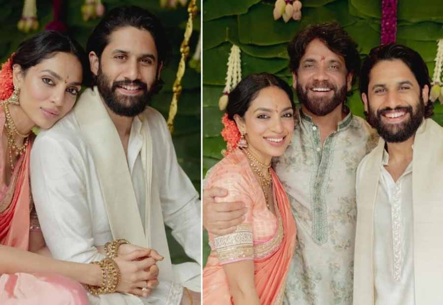 फोटोज शेयर कर नागार्जुन ने लिखा, 'हमें काफी खुशी हो रही है बताते हुए कि हमारे बेटे नागा चैतन्य की शोभिता धुलिपाला से सगाई हो गई है। सगाई आज सुबह 9.42 बजे हुई। हम शोभिता का अपने परिवार में स्वागत करते हैं। इस प्यारे कपल को बधाई। दोनों को लाइफटाइम की खुशियां और प्यार मिले। भगवान का आशीर्वाद इन पर हमेशा रहे। एक अनंत प्रेम की शुरुआत।'