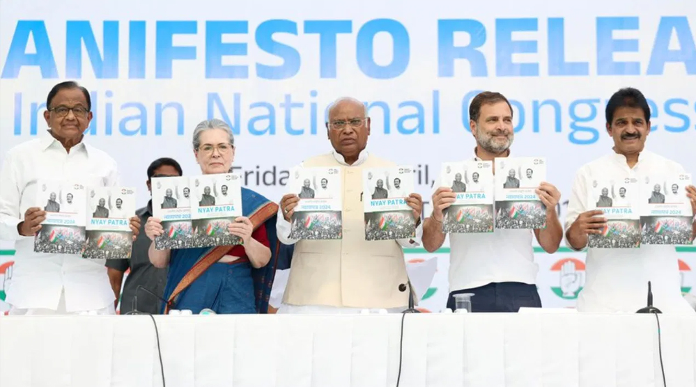 इस घोषणापत्र को न्यायपत्र का नाम दिया गया है। इसमें महिलाओं, युवाओं, श्रमिकों और पिछड़े वर्गों जैसे जनसांख्यिकी के लिए '25 गारंटी' पर केंद्रित है। साथ ही कांग्रेस ने घोषणा की कि वह कार्यालय में 'नव' संकल्प आर्थिक नीति' 'कार्य, धन, कल्याण' की दृष्टि से अपनाएगी। 'न्याय पत्र' कहे जाने वाले कांग्रेस ने आरक्षण पर 50% की सीमा हटाने, जाति जनगणना, गैर-एससी/एसटी/ओबीसी तक सीमित करने की वर्तमान योजना के विपरीत सभी जातियों के लिए 10% ईडब्ल्यूएस कोटा का विस्तार करने, कानून का विस्तार करने का वादा किया है। प्राइवेट एजुकेशन इंस्टीट्यू में जाति कोटा, 'सार्वजनिक और निजी रोजगार और शिक्षा में विविधता को मापने, निगरानी और बढ़ावा देने' के लिए एक 'विविधता आयोग' और दलबदलुओं की स्वचालित अयोग्यता सुनिश्चित करने के लिए कानून में बदलाव। इसने गरीब परिवारों को प्रति वर्ष 1 लाख रुपये, एमएसपी पर एक कानून और अग्निपथ रक्षा भर्ती योजना को समाप्त करने की कसम खाई है। यह घोषणापत्र 'कल्याणवाद बनाम ध्रुवीकरण' की पिच तैयार करता दिख रहा है।