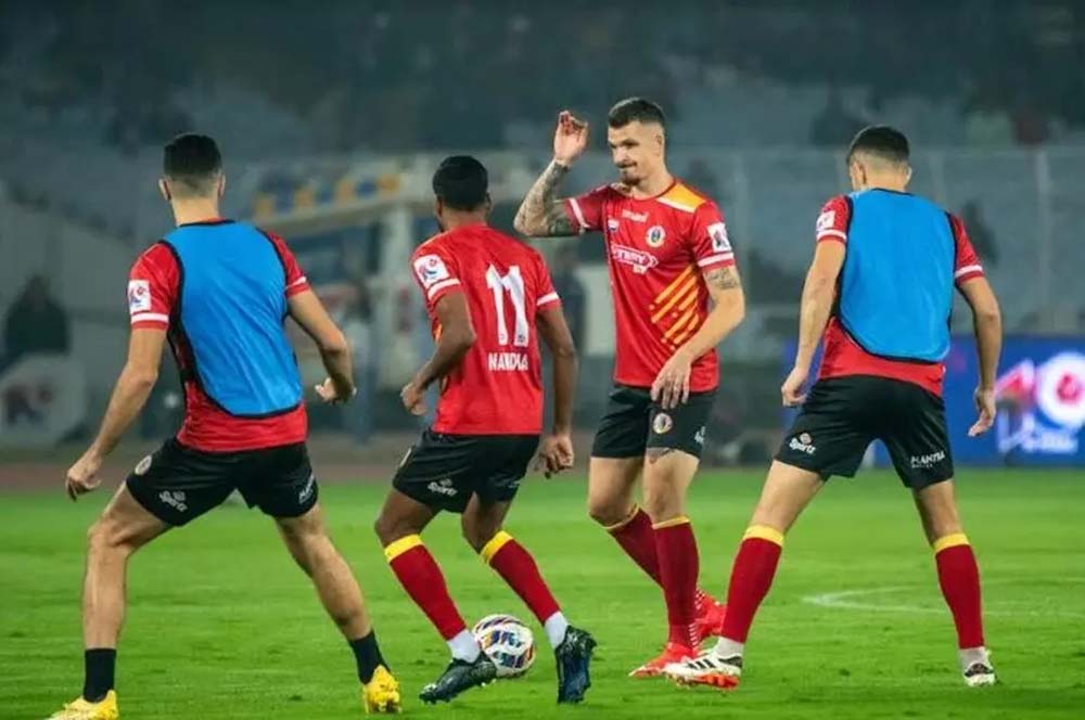 ईस्ट बंगाल एफसी की टीम आज शाम इंदिरा गांधी एथलेटिक स्टेडियम में इंडियन सुपर लीग (आईएसएल) 2023-24 के डबल हेडर डे के पहले मुकाबले में मेजबान नॉर्थईस्ट यूनाइटेड एफसी (एनईयूएफसी) से खेलेगी। हाईलैंडर्स का इरादा अपने घरेलू मैदान में रेड एंड गोल्ड ब्रिगेड की लय बिगाड़ने का होगा। जुआन पेड्रो बेनाली एंड उनके हाईलैंडर्स ने मिड-सीजन ब्रेक के बाद अपना अभियान ड्रा के साथ शुरू किया, जिसमें उन्होंने जमशेदपुर एफसी को कड़ी टक्कर देते हुए 1-1 से रोका। मोहम्मद अली बेमामर के देर से बराबरी के गोल ने उन्हें मैच से एक अंक पाने में मदद की। नॉर्थईस्ट यूनाइटेड एफसी छठे प्लेऑफ स्थान के लिए कई प्रतिभागियों में से एक है। वो छठे स्थान पर मौजूद बेंगलुरू एफसी (14 मैचों में 14 अंक) से केवल एक अंक पीछे है और उसने हाईलैंडर्स (13) से एक मैच अधिक खेला है।