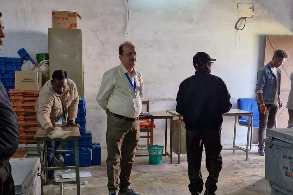 पंचायत एवं नगरीय उप निर्वाचन 2024 हेतु उपयोग में लाए जाने वाले ईव्हीएम मशीनों की ईव्हीएम वेयर हाऊस में संचालित एफएलसी (फर्स्ट लेवल चेकिंग) का निरीक्षण मध्यप्रदेश राज्य निर्वाचन आयोग द्वारा नियुक्त प्रेक्षक श्री शैलेन्द्र कियावत द्वारा किया गया। इस अवसर पर राजनैतिक दलों के प्रतिनिधि उपस्थित थे। एफएलसी का कार्य राज्य स्तरीय मास्टर ट्रेनर श्री अजय जैन एवं डॉ. कौशलेन्द्र सिंह की उपस्थिति में किया जा रहा है।