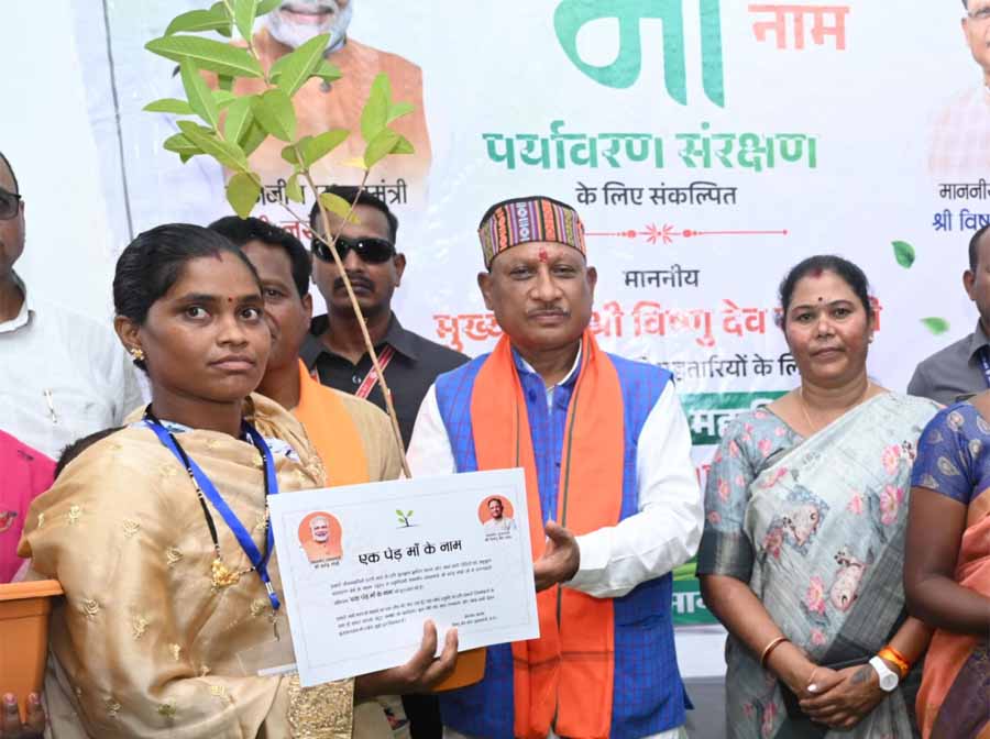 मुख्यमंत्री श्री विष्णुदेव साय ने ‘‘एक पेड़ मां के नाम’’ अभियान के तहत जशपुर जिले में पौधरोपण महाभियान का शुभारंभ किया। उन्होंने दुलदुला में आयोजित कार्यक्रम में महतारी वंदन योजना की 10 हितग्राही महिलाओं को अमरूद का पौधा व संदेश पत्र भेंट किया।