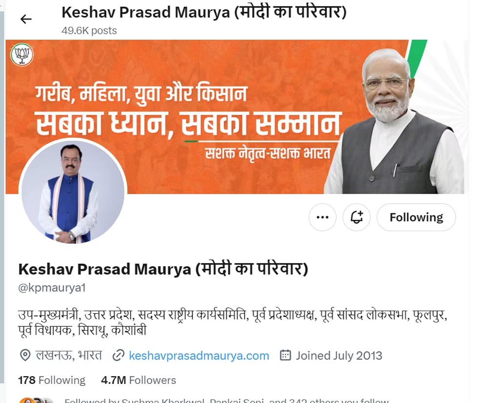 सीएम योगी के साथ ही यूपी के डिप्टी सीएम ब्रजेश पाठक और केशव प्रसाद मौर्य ने भी अपना बायो बदलते हुए नाम के साथ मोदी का परिवार लिख लिया है। भाजपा के प्रदेश अध्यक्ष भूपेंद्र चौधरी समेत तमाम पदाधिकारियों और मंत्रियों ने भी अपना बायो बदल लिया है। अपने नाम के साथ ही मोदी का परिवार लिख लिया है। यह बदलाव उसी तरह है जैसे पिछले लोकसभा चुनाव से ठीक पहले भाजपा ने 'मैं भी चौकीदार' अभियान शुरू किया था और सभी नेताओं ने अपना बायो बदल लिया था। पिछली बार कांग्रेस नेता राहुल गांधी ने भाजपा को मुद्दा थमाया था। इस बार लालू के आरोपों के बाद भाजपा ने मुद्दे को लपका है।