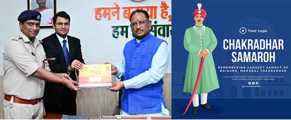 गौरतलब है कि 39वां चक्रधर समारोह 07 से 16 सितम्बर 2024 तक रायगढ़ जिला मुख्यालय स्थित रामलीला मैदान में आयोजित किया जाएगा। शुभारंभ समारोह में पद्मश्री हेमा मालिनी नृत्य नाटिका 'राधा रासबिहारी' की प्रस्तुति देंगी और समापन समारोह में डॉ.कुमार विश्वास कविता पाठ करेंगे। समारोह के दौरान प्रतिदिन सायं 6 बजे से आयोजित सांस्कृतिक संध्या में नामी कलाकारों द्वारा विभिन्न विधाओं में प्रस्तुतियां दी जाएगी।