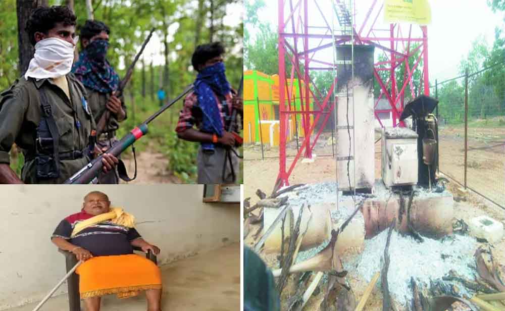 छत्तीसगढ़ के नारायणपुर में नक्सलियों ने फिर एक बार उत्पात मचाया है। नक्सलियों ने छोटे डोंगर इलाके में दो बीएसएनएल टावरों को आग के हवाले कर कर दिया। आगजनी के बाद इलाके में मोबाइल सर्विस प्रभावित हो गई। वहीं नक्सलियों ने नारायणपुर के प्रख्यात वैद्यराज और पद्मश्री से सम्मानित हेमचंद मांझी के खिलाफ पर्चे भी जारी किए हैं। नक्सलियों ने पर्चों में लिखा है कि इलाके में संचालित खदानों के लिए हेमचंद मांझी काम करते हैं।