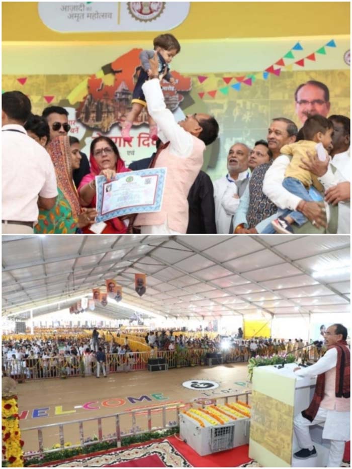 मुख्यमंत्री श्री चौहान ने मुख्यमंत्री जन सेवा अभियान की जानकारी ली। कलेक्टर शडॉ पंकज जैन ने बताया कि अभी तक ज़िले में 3 लाख 19 हज़ार आवेदन प्राप्त हुए हैं और इनमें से 2 लाख 90 हज़ार आवेदन स्वीकृत भी किए जा चुके हैं। मुख्यमंत्री श्री चौहान ने आयुष्मान योजना, गरीबों के मकान की योजना, भू आवास अधिकार योजना, गरीबों के राशन की योजनाओं का गौरव विस्तार से बताया। मुख्यमंत्री श्री चौहान ने कहा कि सरकार का समग्र रूप से एक ही लक्ष्य है जनता की ख़ुशहाली। कार्यक्रम में मंत्री श्री ओमप्रकाश सकलेचा और श्री राजवर्धन सिंह दत्तीगांव ने भी संबोधित किया।