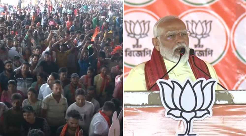 पीएम मोदी ने कहा, "यहां की तस्वीर बता रही है कि बंगाल में इस बार एक अलग माहौल है। कुछ अलग होने जा रहा है… पश्चिम बंगाल मोदी के मिशन पूर्वी भारत का बहुत महत्वपूर्ण राज्य है। आज़ादी के 50 साल तक कांग्रेस के परिवार ने ही सरकारें चलाई लेकिन कांग्रेस शासन में पूर्वी भारत को सिर्फ गरीबी मिली, सिर्फ पलायन मिला।" प्रधानमंत्री ने कहा, "इन लोगों ने बंगाल में हिंदुओं को दोयम दर्जे का नागरिक बनाकर रख दिया है। तुष्टिकरण की ज़िद में INDI गठबंधन SC-ST-OBC को मिलने वाला आरक्षण भी छीनना चाहती है। ये लोग कह रहे हैं कि आरक्षण अब मुसलमानों को दिया जाए। पूरा का पूरा आरक्षण मुसलमानों को दिया जाए। कर्नाटक में कांग्रेस ने OBC को मिलने वाले सारे आरक्षण मुसलमान को दे चुकी है। वोट बैंक की इसी राजनीति ने CAA जैसे मानवता की रक्षा करने वाले कानून को विलेन बना दिया।"