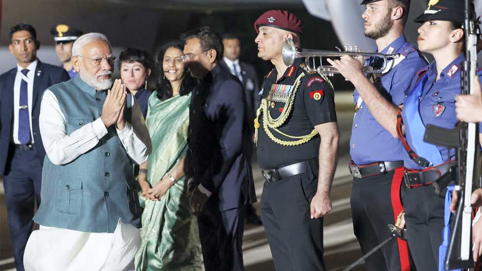 प्रधानमंत्री नरेंद्र मोदी अपुलिया में आयोजित ग्रुप ऑफ सेवन (जी-7) शिखर सम्मेलन में भाग लेने इटली पहुंच गए हैं. अपुलिया के ब्रिंडिसि हवाई अड्डे पर इटली में भारत के राजदूत वाणी राव और अन्य अधिकारियों ने पीएम मोदी का स्वागत किया. प्रधानमंत्री नरेंद्र मोदी ने एक्स पर पोस्ट कर लिखा, "G7 शिखर सम्मेलन में हिस्सा लेने के लिए इटली पहुंचा. विश्व नेताओं के साथ सार्थक चर्चा में शामिल होने के लिए उत्सुक हूं. साथ मिलकर, हमारा लक्ष्य वैश्विक चुनौतियों का समाधान करना और उज्जवल भविष्य के लिए अंतर्राष्ट्रीय सहयोग को बढ़ावा देना है."