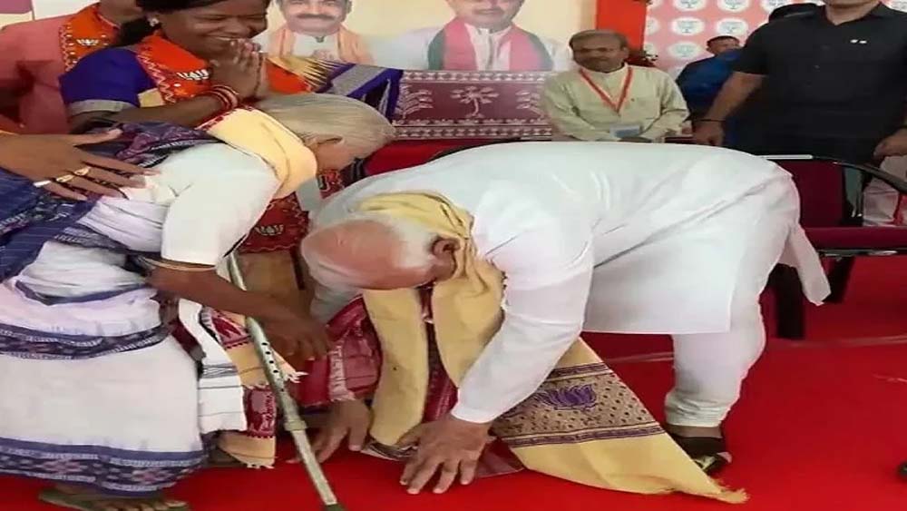 पीएम मोदी ने आदिवासी कवयित्री पूर्णमासी जानी के पैर छुए तो उनको उन्होंने आशीर्वाद भी दिया। वह भी पीएम मोदी के पैर छूने के लिए झुकी लेकिन उन्होंने उनके हाथ पकड़ लिए और जानी से कहा कि आपने बहुत काम किया है।