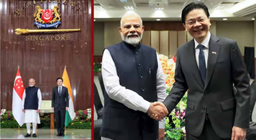 प्रधानमंत्री नरेंद्र मोदी सिंगापुर दौरे पर हैं। अपने दौरे के दूसरे दिन प्रधानमंत्री नरेंद्र मोदी, सिंगापुर की संसद गए, जहां उनका औपचारिक स्वागत किया गया। बाद में पीएम मोदी और सिंगापुर के प्रधानमंत्री लॉरेंस वोंग के बीच प्रतिनिधि स्तर की बैठक हुई। इस बैठक में दोनों देशों के बीच चार अहम समझौते हुए। इन समझौतों से दोनों देशों के बीच संबंध और मजबूत होंगे। भारत सिंगापुर में डिजिटल तकनीक, सेमीकंडक्टर, स्वास्थ्य और स्किल डेवलेपमेंट के क्षेत्र में सहयोग बढ़ाने पर सहमति बनी है।