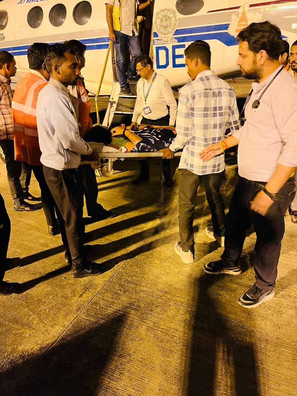 चिरायू हॉस्पिटल में बेड उपलब्धता की पुष्टि के पश्चात, kelsa.io पर एयर एम्बुलेंस की व्यवस्था हेतु अनुरोध किया गया। सीएमएचओ और सिविल सर्जन की देखरेख में महिला को 108 एम्बुलेंस के माध्यम से खजुराहो एयरपोर्ट लाया गया और एयर एम्बुलेंस से भोपाल भेजा गया। भोपाल एयरपोर्ट पर महिला को 108 एम्बुलेंस द्वारा चिरायू हॉस्पिटल पहुँचाया गया, जहाँ शाम 7:30 बजे महिला को भर्ती कर लिया गया। वर्तमान में, चिरायू हॉस्पिटल में महिला की स्थिति स्थिर और सामान्य है।