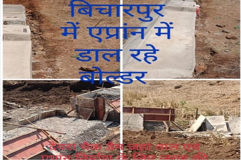 उपयंत्री संदीप शुक्ला एवं उनके चहेते ठेकेदार कर रहे गुणवत्ताहीन चैक डैम का निर्माण