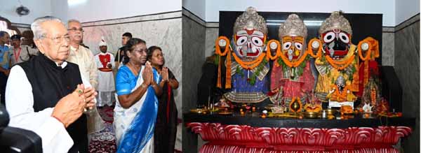 राष्ट्रपति श्रीमती द्रौपदी मुर्मु राजधानी के गायत्री नगर स्थित भगवान जगन्नाथ मंदिर पहुँची। यहाँ उन्होंने भगवान जगन्नाथ, बलभद्र जी तथा सुभद्रा जी के दर्शन किये। यहाँ उन्होंने देशवासियों की सुख-समृद्धि एवं निरंतर प्रगति की कामना की। इस अवसर पर राज्यपाल श्री विश्व भूषण हरिचंदन, मुख्यमंत्री श्री भूपेश बघेल, विधायक श्री कुलदीप जुनेजा, विधायक श्री बृजमोहन अग्रवाल, महापौर श्री एजाज ढेबर, अपर मुख्य सचिव श्री सुब्रत साहू, पूर्व राज्य मुख्य सूचना आयुक्त श्री एमके राउत, मंदिर समिति के अध्यक्ष श्री पुरंदर मिश्रा सहित मंदिर समिति के सदस्यगण एवम प्रबुद्ध नागरिक उपस्थित थे।
