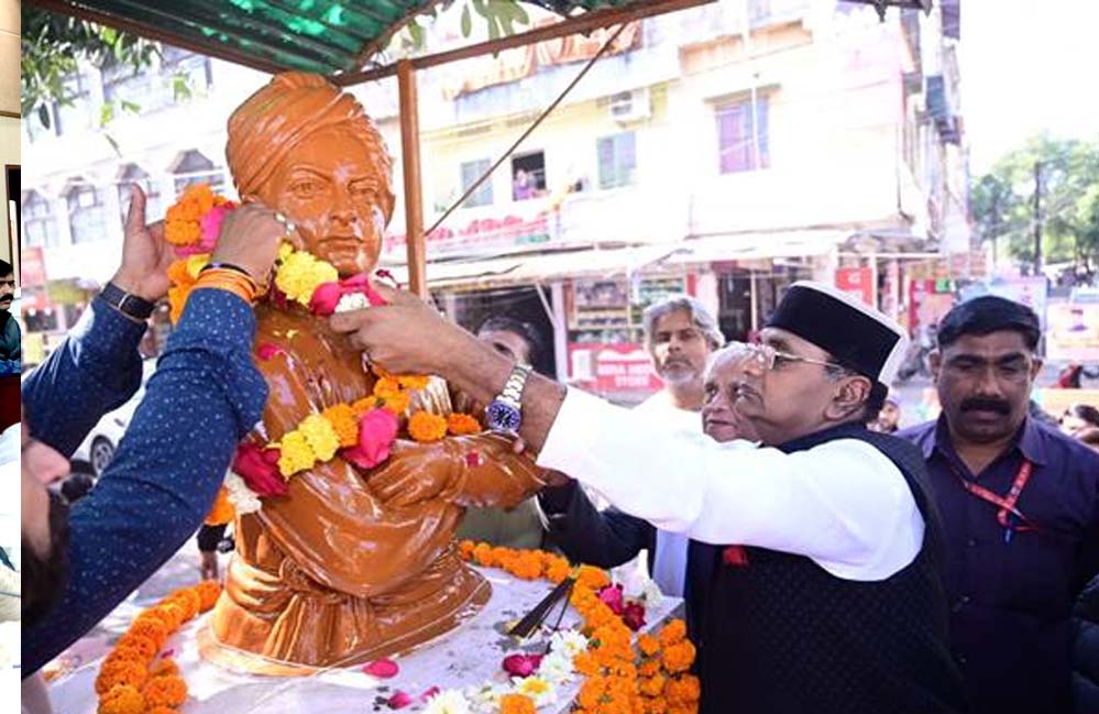 मंत्री विश्वास सारंग ने स्वामी विवेकानंद की प्रतिमा पर माल्यार्पण किया