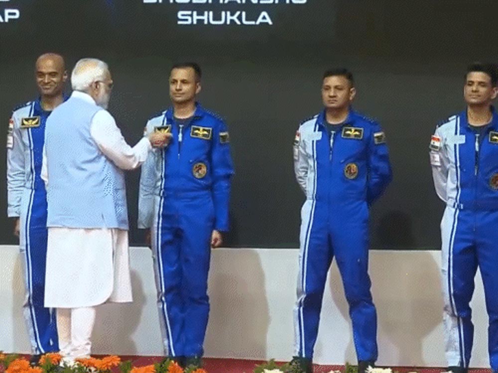 गगनयान मिशन का इंतजार कर रहे भारत को मंगलावर को बड़ी खुशखबरी मिली है। केरल के तिरुवनंतपुरम में विक्रम साराभाई स्पेस सेंटर पहुंचे प्रधानमंत्री नरेंद्र मोदी ने देश को चुने गए चार एस्ट्रोनॉट्स से रूबरू कराया। भारतीय वायुसेना के इन वीरों को अंतरिक्ष में जाने के लिए चुना गया है। खास बात है कि कई उम्मीदवारों की जांच के बाद अंतिम चार उम्मीदवारों की सूची तैयार की गई थी।