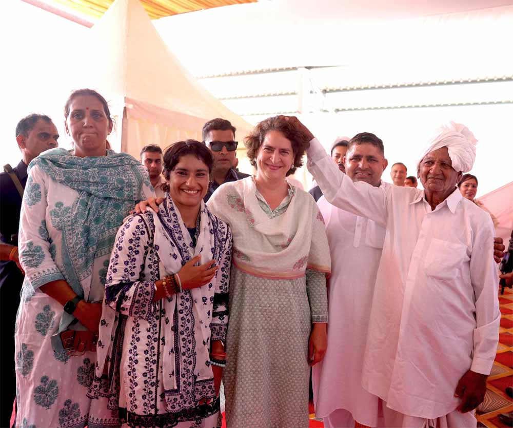 कांग्रेस की राष्ट्रीय महासचिव प्रियंका गांधी ने चुनावी राज्य हरियाणा के जुलाना विधानसभा सीट से पार्टी प्रत्याशी विनेश फोगाट के पक्ष में बुधवार को विशाल जनसभा को संबोधित किया। इस दौरान उन्होंने जनता से अन्याय के खिलाफ अपने वोट की शक्ति का इस्तेमाल करने का आह्वान किया। कांग्रेस महासचिव प्रियंका गांधी ने प्रदेश की भाजपा सरकार पर निशाना साधते हुए कहा कि नौजवानों, पहलवानों, किसानों और महिलाओं के साथ अन्याय हो रहा है। भगवान ने कहा है कि जब-जब अन्याय होगा, वो लड़ाई लड़ने के लिए आपके बीच उतरेंगे। यही भगवान आपके दिल में हैं, आप कब खड़े होंगे, इस अन्याय के खिलाफ?