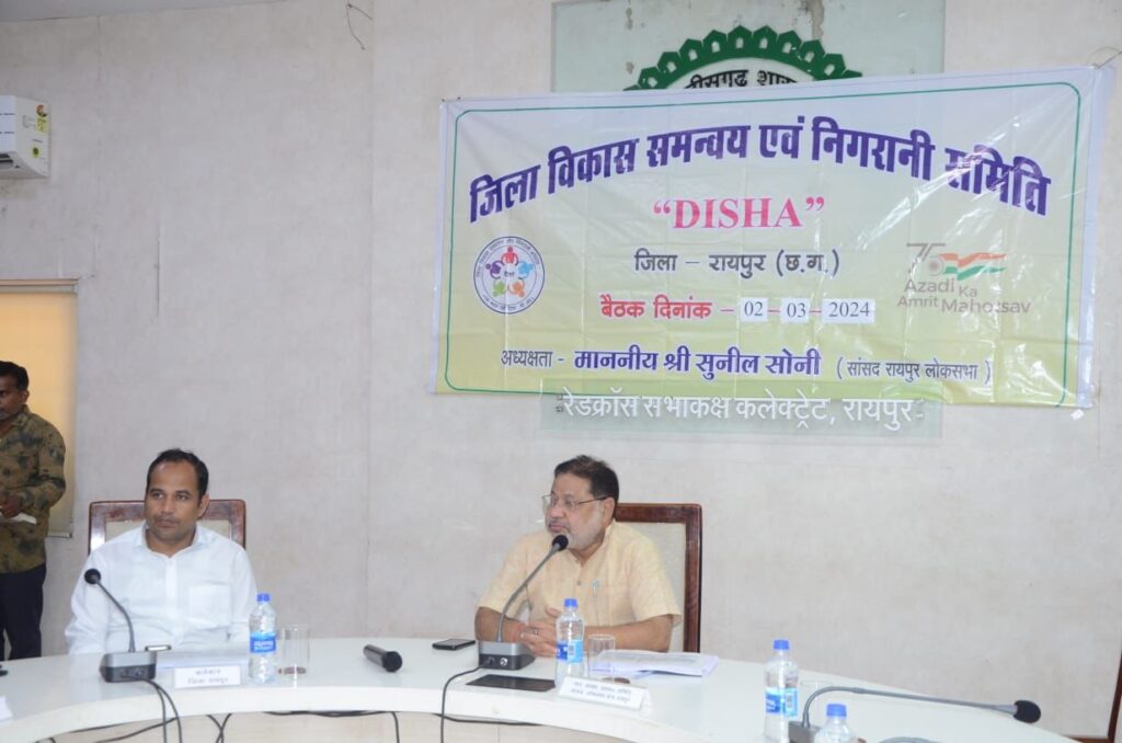 सांसद सुनील सोनी के अध्यक्षता में कलेक्टोरेट परिसर स्थित रेडक्रास सभाकक्ष में जिला विकास समन्वय एवं निगरानी समिति (दिशा) की बैठक हुई। बैठक में सांसद श्री सोनी ने संबोधित करते हुए कहा कि गर्मी के दिनों जल आपूर्ति सुचारु रूप हो यह सुनिश्चित किया जाए। उन्होंने कहा कि अमृत सरोवर योजना के अंतर्गत जिले के विभिन्न भागों में नए तालाबों का निर्माण किया जाए और पुराने तालाबों को भी संरक्षित किया जाए। उन्होंने कहा कि मनरेगा में कार्यदिवस को ज्यादा से ज्यादा सृजित किया जाए।